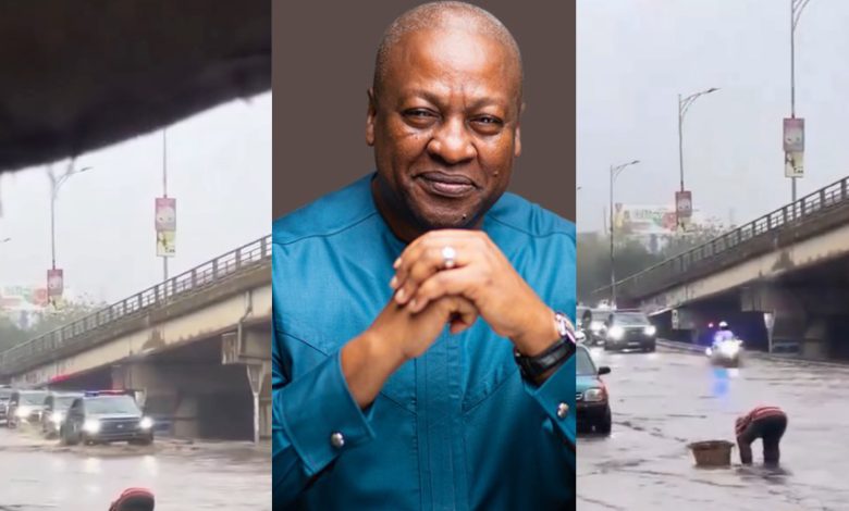 President John Dramani Mahama found himself in the middle of Ghana’s flooding woes as his convoy was spotted carefully making its way through floodwaters after a bout of torrential rains.