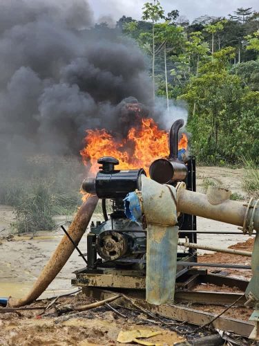 According to officials, the two suspects were apprehended during an intelligence-led operation inside the protected forest, where illegal mining equipment and materials were also discovered.